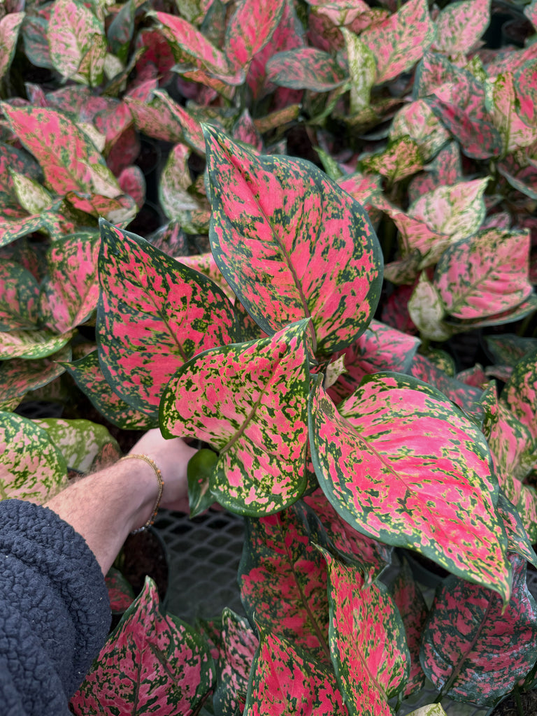The Aglaonem Red Valentine is distinguished by the color of its foliage. Its leaves are shades of green and red. It is highly valued as a houseplant for its compact shape and tolerance to low light. Indoors, it can reach up to 1 m in height. It has powerful underground stems, called rhizomes, which easily colonize its entire pot. Despite its ease of invading its pot, it prefers to be cramped. For this reason, it is recommended to reduce the frequency of repotting.