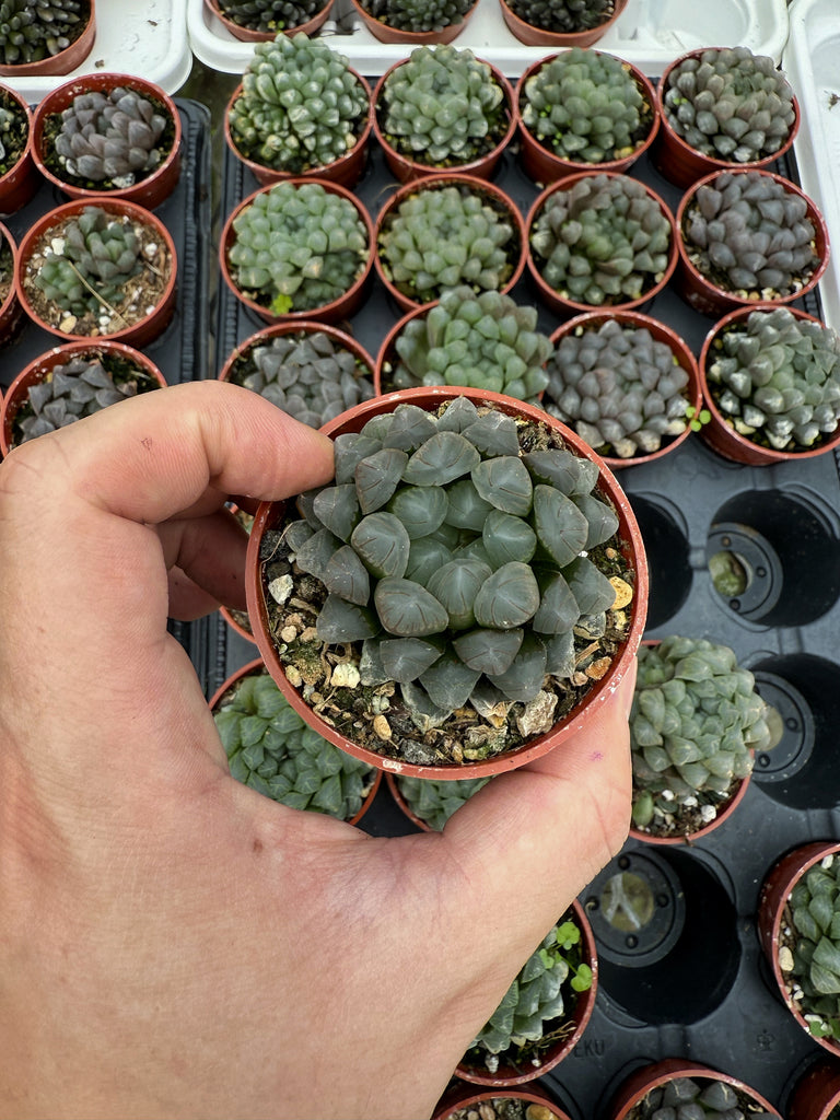 This succulent forms a small rosette. Its fleshy leaves are slightly transparent and shiny. It prefers sunny rooms, but can tolerate dim light.