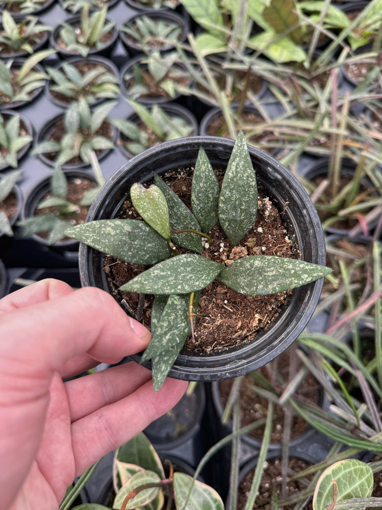 Le Hoya parviflora ‘Splash’ est une variété élégante et recherchée, appréciée pour ses feuilles allongées et fines, souvent marquées de jolis éclaboussures argentées (“splash”). Son feuillage délicat lui donne une apparence légère et raffinée, parfaite pour les collections de hoyas.