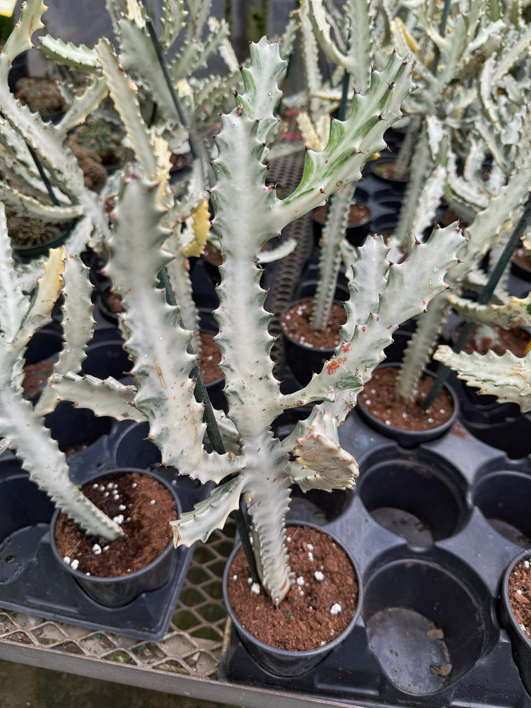 Une plante grasse à l’allure d’un cactus. L’Euphorbe Lactea se démarque par sa coloration blanche. Une plante très recherchée par les collectionneurs. Pour conserver sa couleur, il est recommandé de l’exposer à une lumière vive.