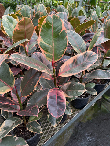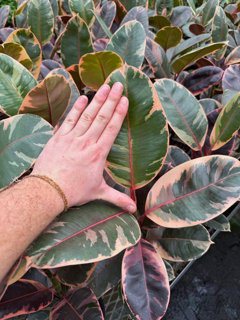Aussi appelée plante caoutchouc pour l’allure de son feuillage épais et luisant. La variété Ruby offre une teinte subtile de rose à votre décor. Les nouvelles feuilles sont enroulées dans une gaine rouge et son feuillage panaché lui donne un look unique. Dû à la dimension des feuilles, il est important de les nettoyer régulièrement afin d’éviter une accumulation de poussière. Comme tous les figuiers, elle n’aime pas être déplacée! De la même famille, la variété elastica est l’une des plus faciles à entretenir.
