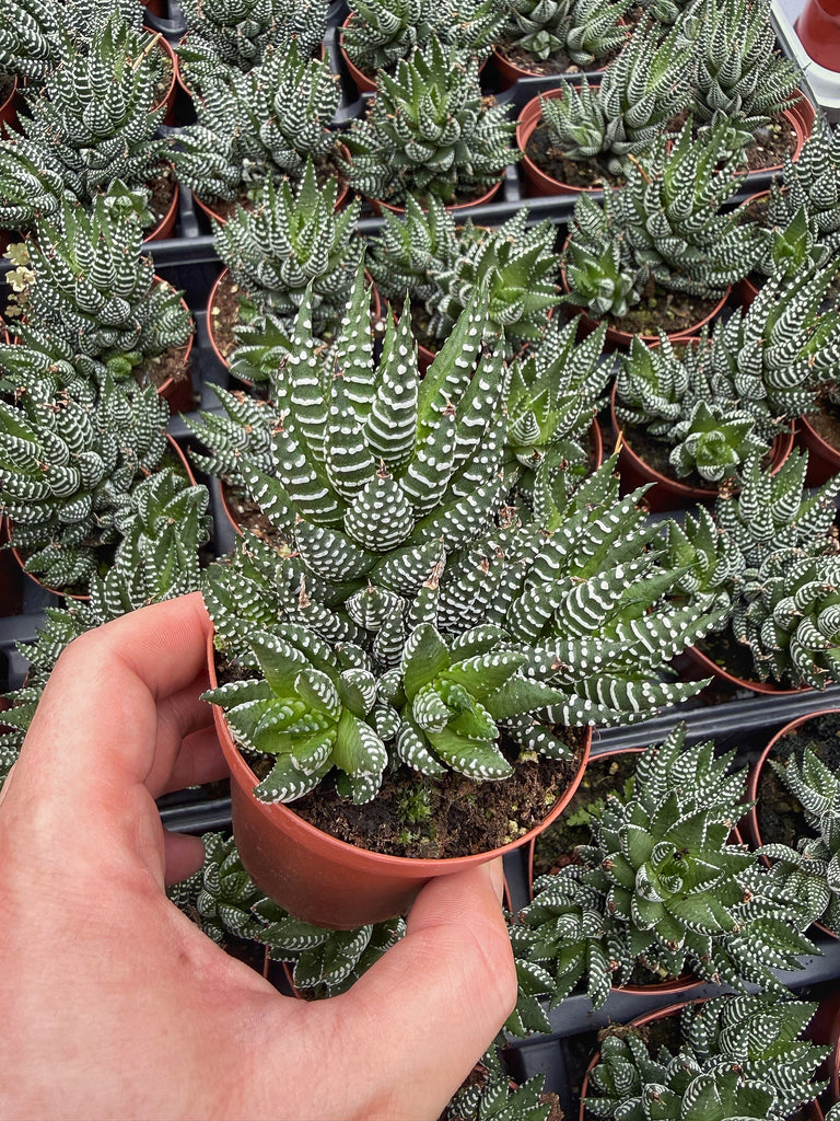 Cette succulente forme une rosette de petite taille et possède des feuilles érigées. Son feuillage de couleur vert strié blanc s’harmonise facilement à n’importe quel décor. Elle préfère les pièces ensoleillées, mais peut tolérer une lumière tamisée.