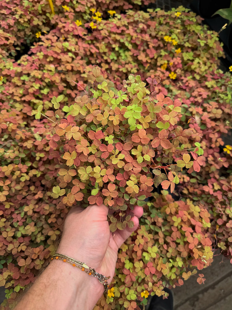 LOxalis Spiralis 'Aurea' porte des feuilles trifoliées comme la plupart des oxalis, mais chaque folioles a une forme légèrement spiralée ou enroulée, ce qui lui donne un aspect unique et sculptural. La couleur est jaune-doré lumineux. Les feuilles peuvent parfois changer légèrement de teinte selon l’exposition à la lumière. Les fleurs sont de couleur jaune.