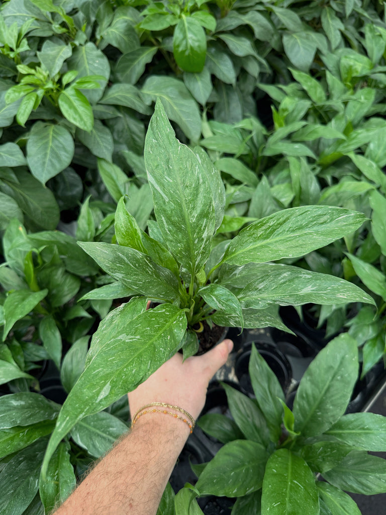Un classique des plantes d’intérieur. Aussi appelé fleur de lune, par sa floraison blanche en forme de demi-lune. La variété Domino porte un feuillage panaché de crème. Ses longues feuilles lancéolées communiquent ses besoins. En effet, lorsque le Spathiphyllum manque d’eau, ses feuilles perdent rapidement du tonus. Une plante qui pousse à l’ombre des arbres dans les forêts tropicales humides. Le Spathiphyllum est très apprécié pour sa tolérance à une faible luminosité. Afin de favoriser sa croissance et son inflorescence, il préfère une humidité ambiante élevée et une lumière vive indirecte.